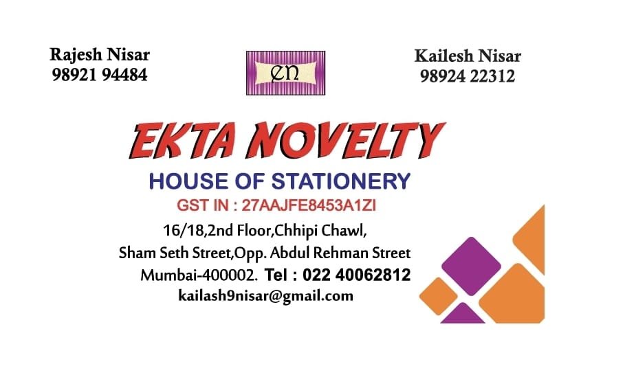 Ekta Novelty and Stationery Shop is your go-to destination for all your stationery needs in the vibrant Marine Lines area. We pride ourselves on offering a wide range of high-quality products, including pens, bags, pouches, water bottles, money boxes, and a variety of stationery items. Whether you're a student looking for the perfect supplies or a professional in need of office essentials, we have you covered. We cater to both retail and wholesale customers, ensuring competitive prices and exceptional service for everyone. Our friendly staff is always ready to assist you in finding exactly what you need. Visit us today to discover the perfect products that spark creativity and organization!